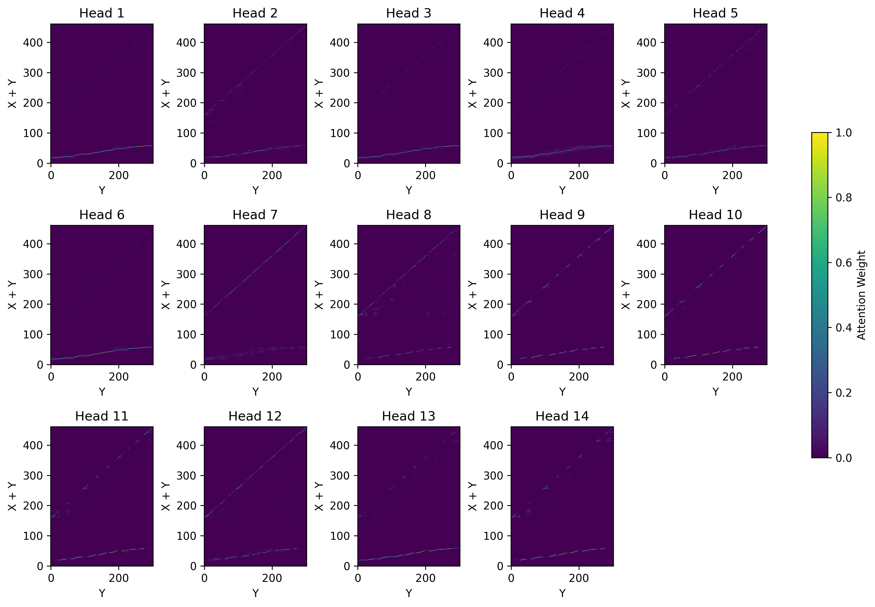 In CosyVoice2, the LLM's attention heads can be categorized into four distinct types based on the distribution of their attention weights: global, alignment, mixed, and speech heads. The first of these, global attention heads, are predominantly found in the lower Transformer layers, where their primary role is to perform a gloabal analysis and modeling of relationships across all text and speech tokens. Alignment heads are primarily located in the middle Transformer layers. They focus on the alignment between input text tokens and output speech tokens by mapping a continuous and monotonic path. This function is similar to the cross-attention mechanism in encoder-decoder architectures. Netx, speech attention heads are concentrated near the output layers, where they model local details around the currently generated token. Finally, mixed attention heads are a hybrid of the alignment and speech types. They can also map the alignment between text and speech tokens, but these alignments are highly unstable.